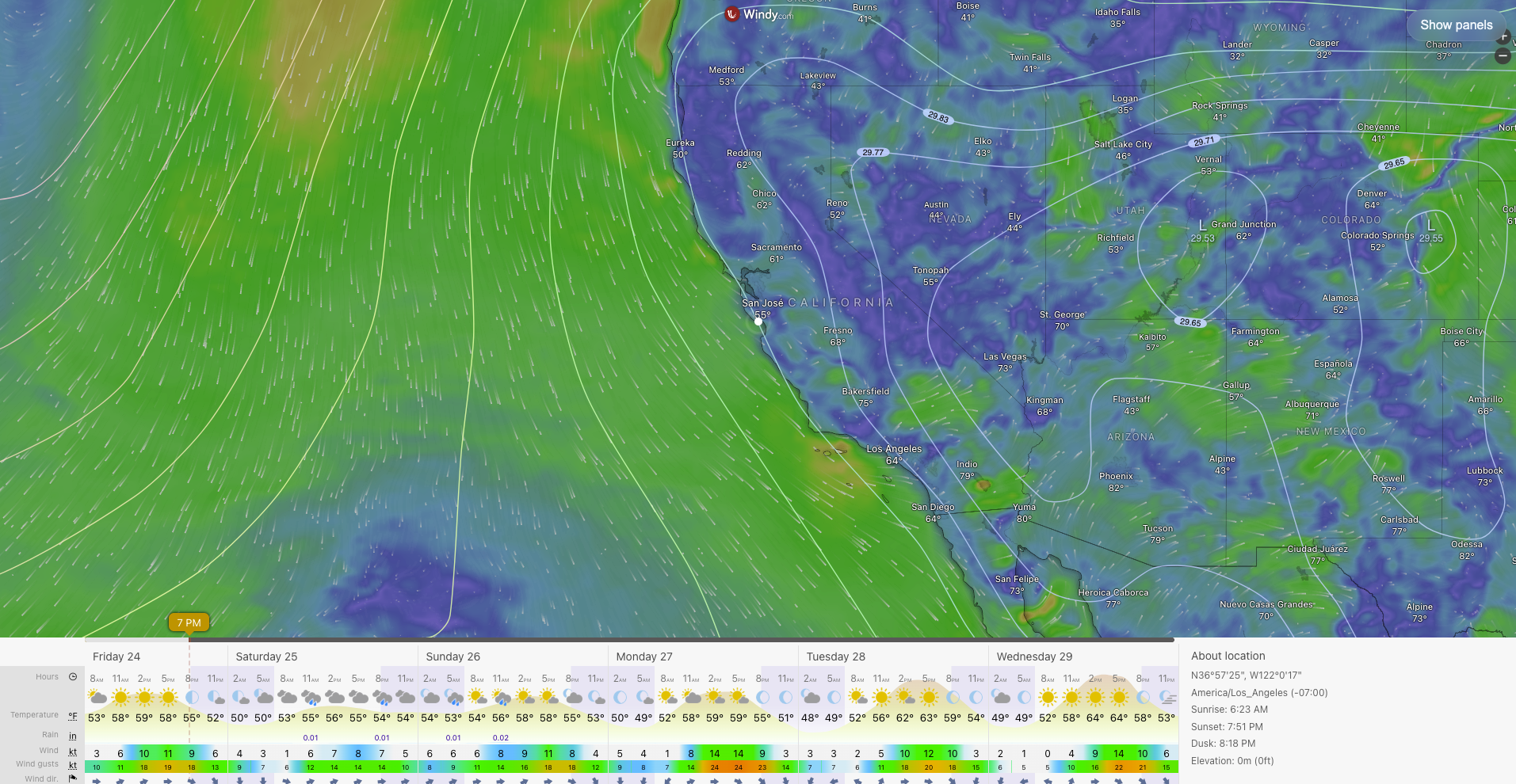 Map Mode hides the forecast panels so you can focus on the wind map. When you are done looking at the map, use the on-screen button to bring the dashboard panels back.